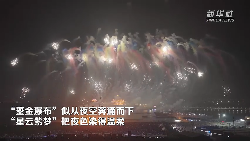 最让人期待的,要数每晚20点准时上演的“津彩盛焰·礼赞祖国”无人机焰火秀。“鎏金瀑布”似从夜空奔涌而下;“星云紫梦”把夜色染得温柔。