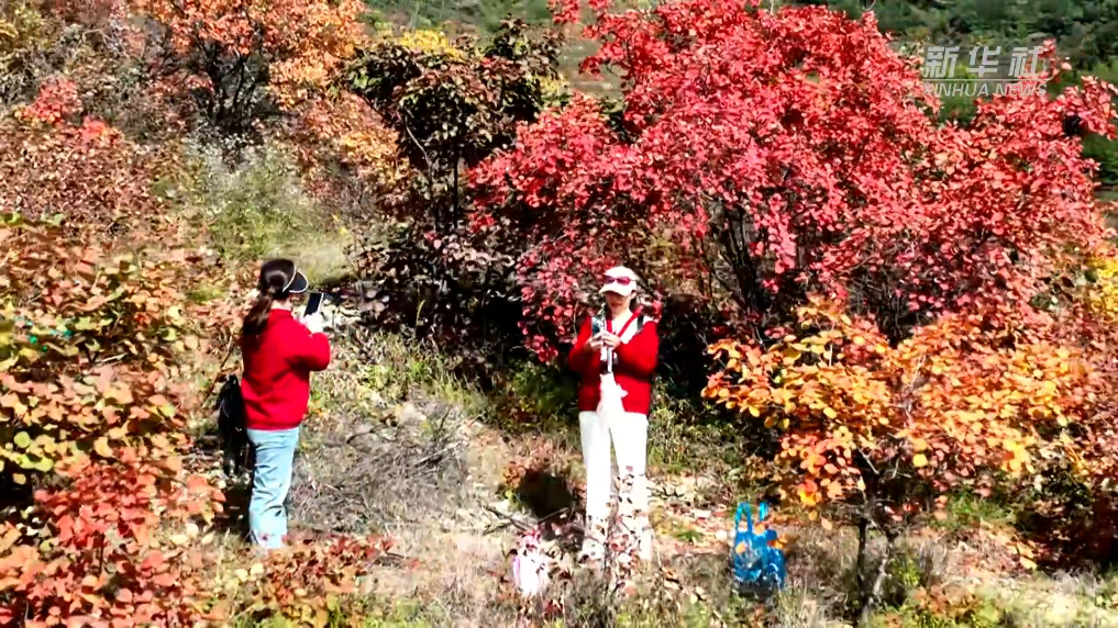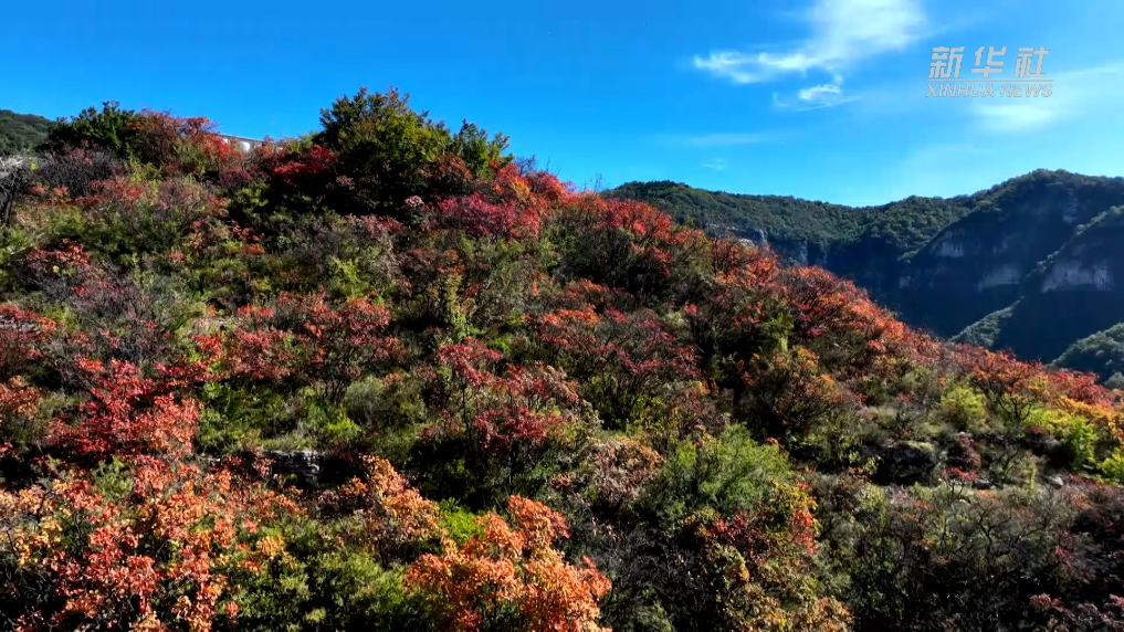 金秋十月,位于太行山深处的河北涉县偏城镇庄子岭迎来红叶观赏季。团团簇簇的红叶从山脚向山顶层层蔓延,吸引了大批游客前来游览。