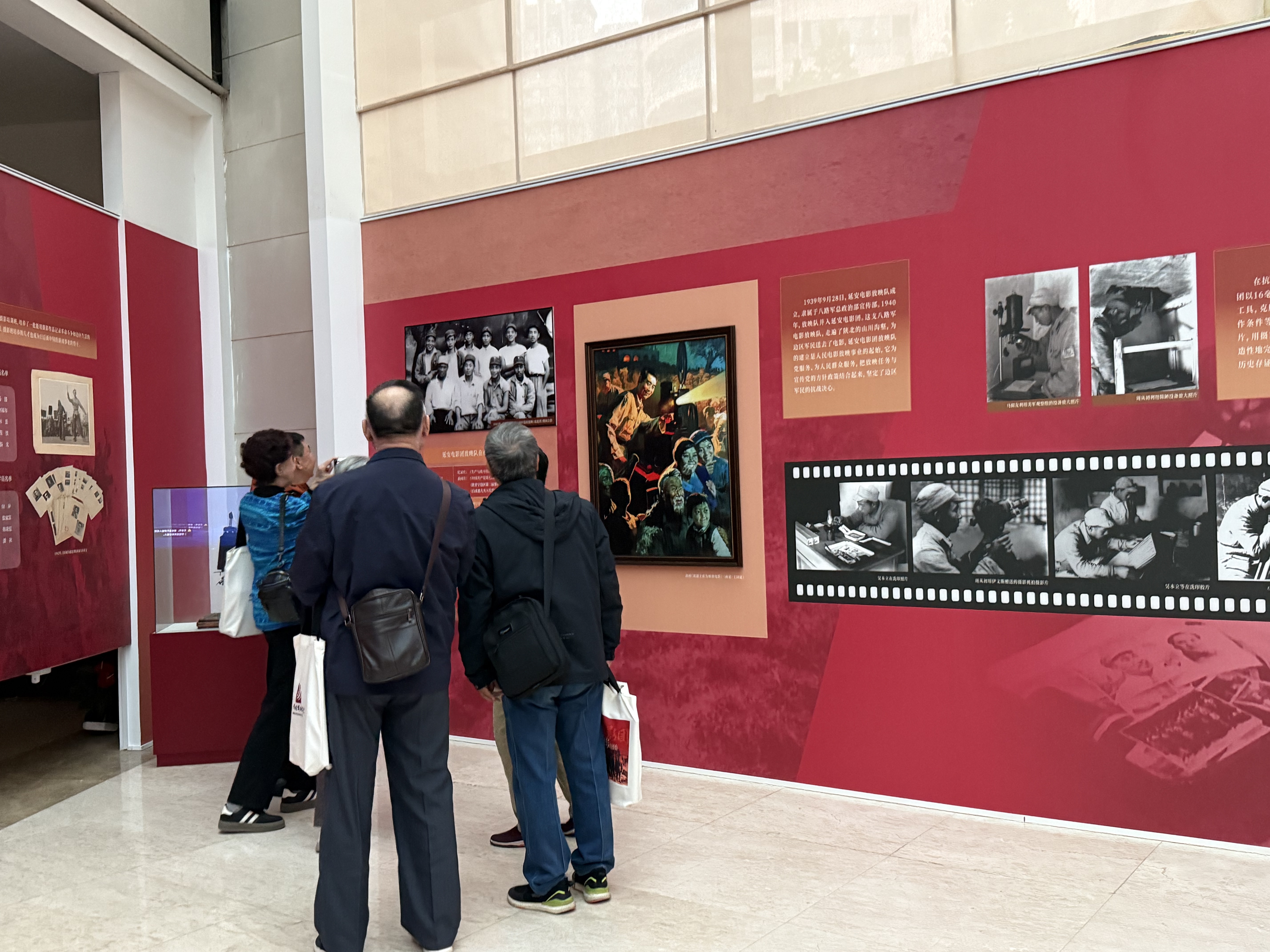 本次展览围绕“人民电影的起点”展开,分设“时代先声”“红色起点”“影像实践”“致敬延安电影人”四个单元,通过历史照片、文献资料、影片作品,系统呈现延安电影团的成立背景、人物群像与实践路径,突出其在国家叙事与影像传播中的奠基地位。