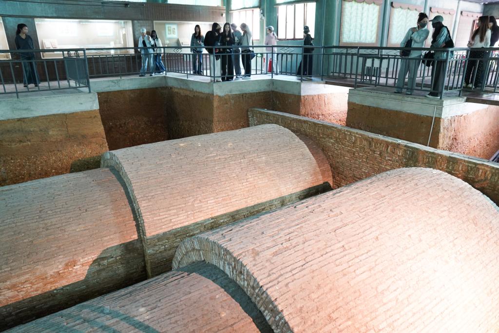 10月21日,游客在广西合浦汉代文化博物馆的汉墓保护展示厅参观。