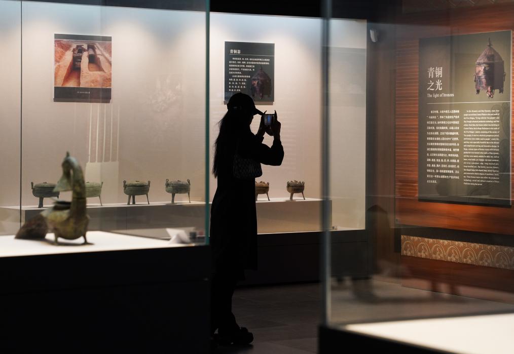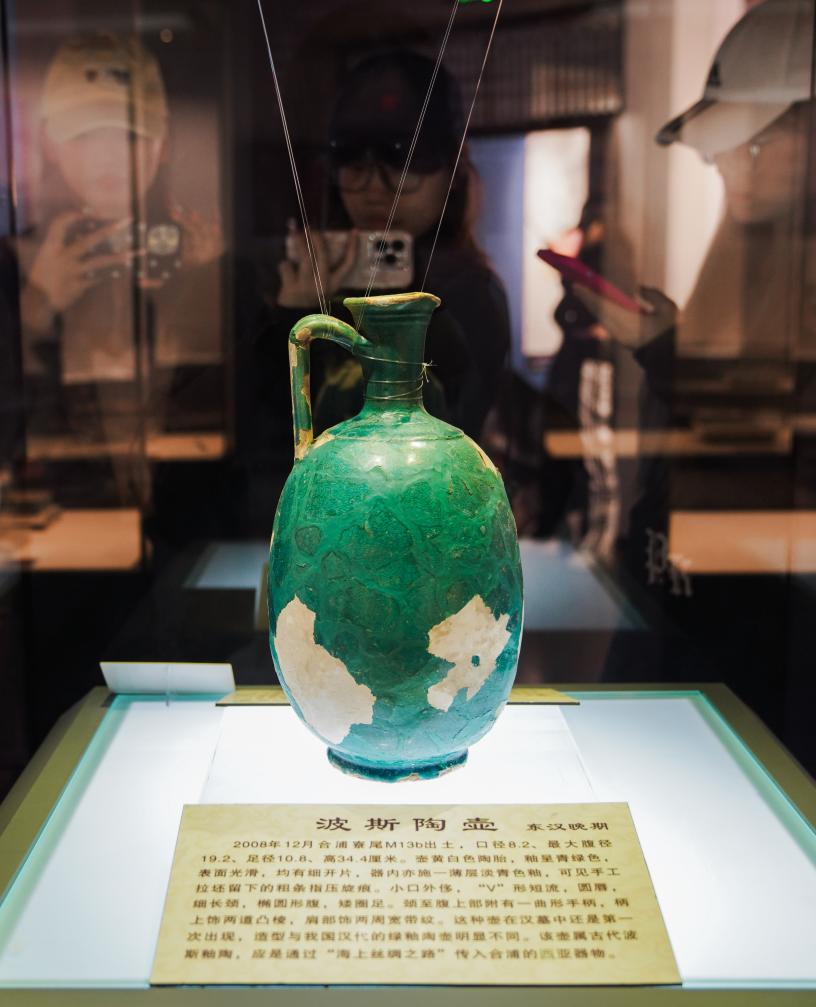 10月21日,游客在广西合浦汉代文化博物馆拍摄波斯陶壶。