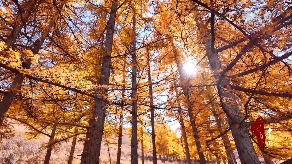 落叶松林浸染秋意,织就绚烂的金色画卷。漫山松林静沐暖阳,鎏金般的光泽在枝叶间流淌。抬眼望去,远处的山巅已覆上一层初雪,洁白与金黄相映,勾勒出雄浑又灵动的北疆风光。