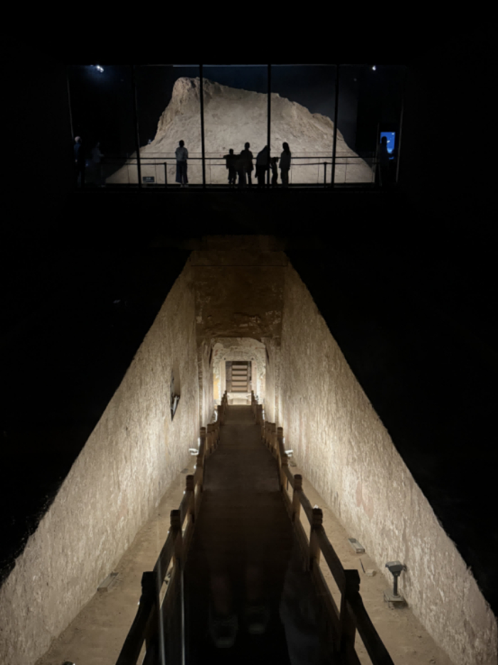 毗邻太原南站的太原北齐壁画博物馆,依托徐显秀墓原址而建,开馆不到两年,就成为年轻游客到太原后的首选“打卡地”。秋日微雨,不少游客手提行李箱来到这里,看“有趣的”历史——立于墓葬遗址之上,透过玻璃可见墓道、过洞、甬道,更能借数字技术“走入”壁画,感受“人在画中游”的奇妙体验。