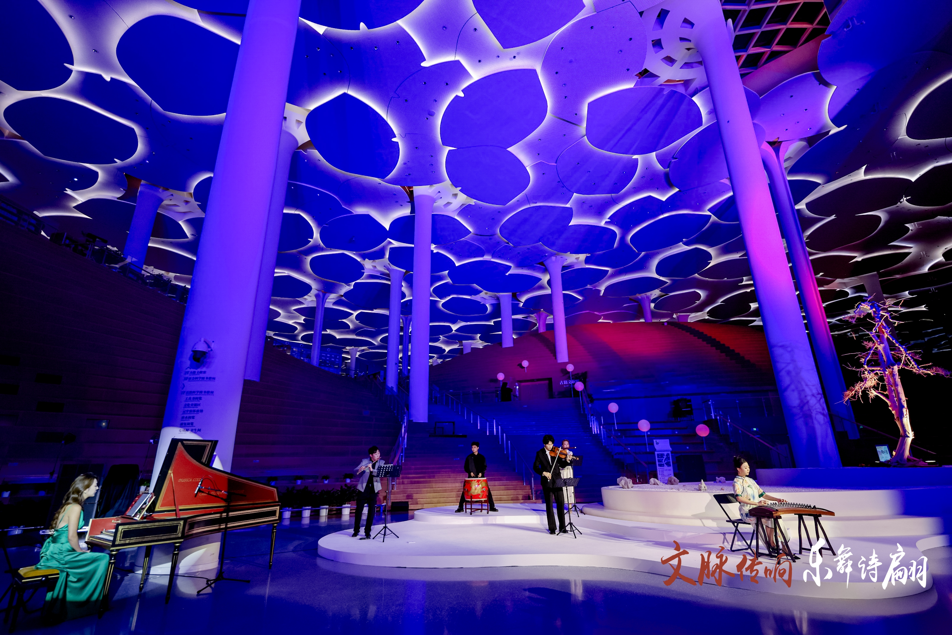 11月3日晚,“文脉传响 乐舞诗翩——聆听‘中轴’声音艺术展”特别活动在北京城市图书馆银杏谷落幕。活动通过“声·舞·诗·画”艺术演绎脉络,多维立体解读中轴线文脉。演出以“诗随琴起”“花韵和鸣”“弈舞书画”“声音书简”四个篇章递进呈现,搭配昆曲、舞蹈、现场书画等艺术表现,共同绘制一幅流动的“中轴文化长卷”。
