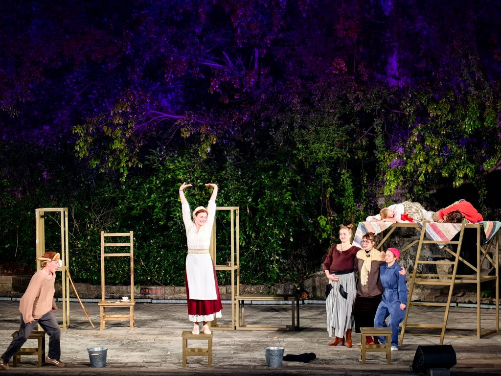 “没想到这部剧能与天然岩洞的环境相契合。”安耶洛斯·马格尼萨利斯说。洞穴天然的回声,凹凸不平的岩壁作为投影屏幕产生虚实融合的效果,不仅给演员,也给观众带来了非同寻常的观赏体验。此外,莎士比亚《十四行诗》改编剧目《154种方式说爱你》、肢体剧《无·影》接连上演……岩洞里回荡着莎士比亚的诗行,石笋上形与影交错。
