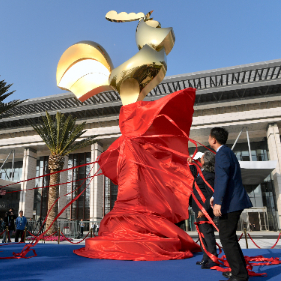 第28届金鸡百花电影节金鸡雕塑揭幕仪式。新华社记者 姜克红 摄