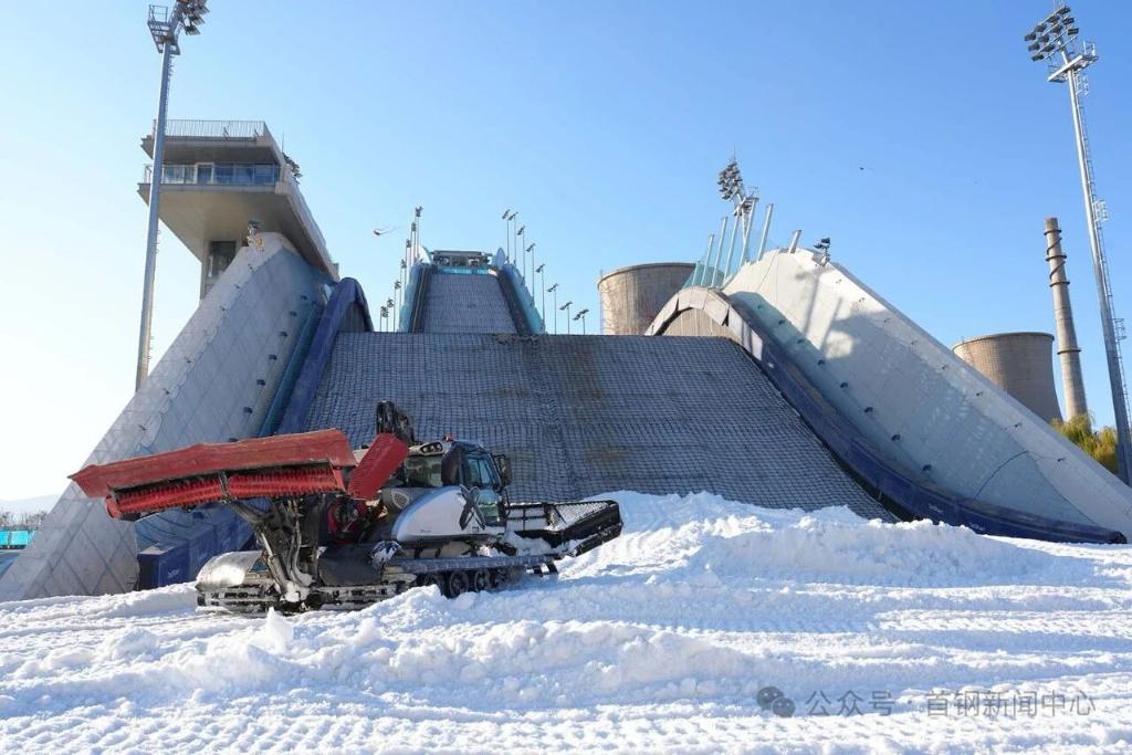 图为正在造雪的北京首钢滑雪大跳台。图片来自首钢新闻中心