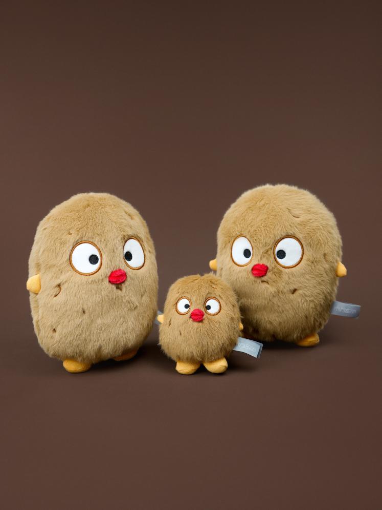 因此,团队将全新系列命名为“甘肃不(土)特产系列”,寓意打破传统印象,让“土特产”变得不土。团队最初选择了天水大樱桃和定西土豆作为首批产品。樱桃玩偶由两颗红樱桃“脸贴脸”的造型组成,表情不同;土豆玩偶则瞪着圆眼、嘟着嘴,憨态可掬。