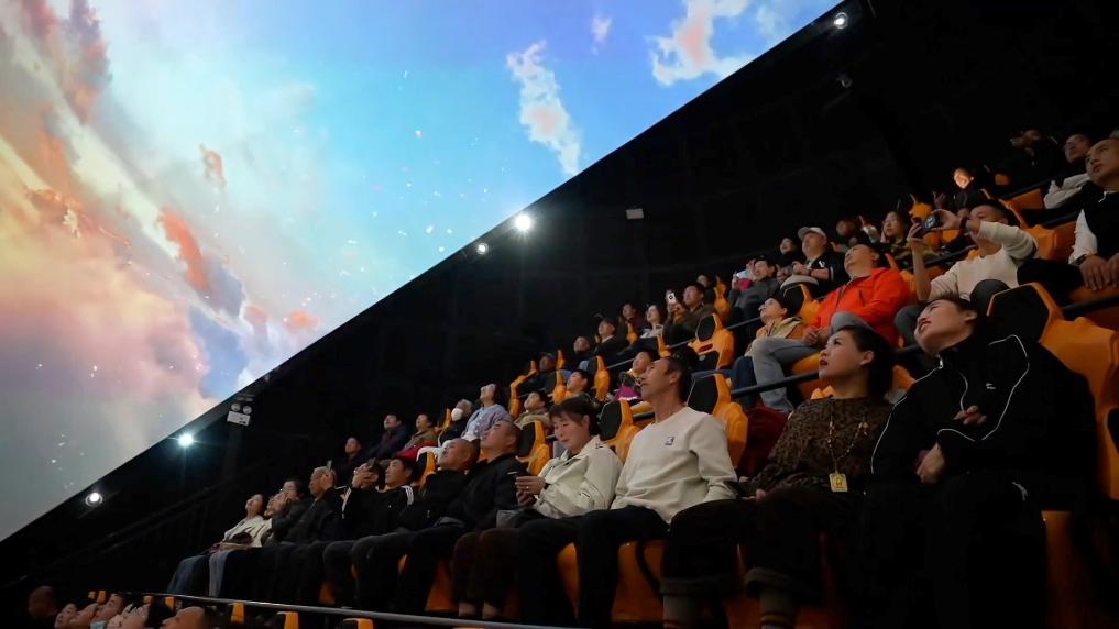 在球幕影院,北宋画家张择端的《清明上河图》“活”了起来,在动态光影辅助下,游客仿佛跃入画中游览千年前的东京汴梁。