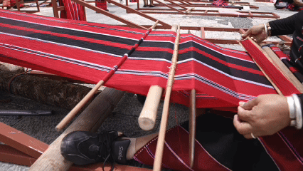 佤族织锦又称佤锦,是佤族世代相传的传统手艺,以竹木腰机为工具,采用踞织法手工编织而成。