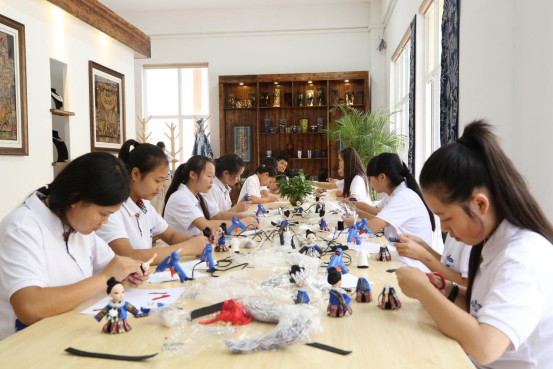 在贵州唐人坊文化创意有限公司的车间里,公司生产部主管隆元碧正为贵州盛华职业学院2023级的学生带来一堂生动的实践课——讲授“唐娃娃”的制作工艺。十三年前,从惠水农村走进盛华学院的她,如今已成为唐人坊公司的核心骨干。2022年,她参与设计的“唐娃娃”亮相北京冬奥会。