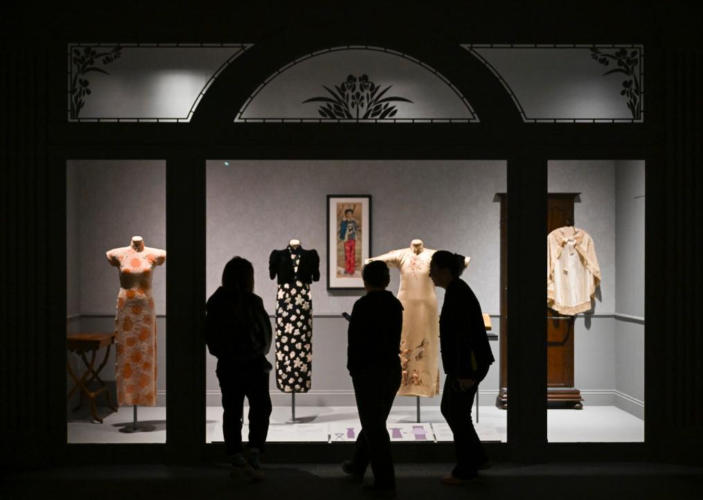 12月22日,观众在“摩登华影:海派旗袍与百年时尚”预展上欣赏展品。