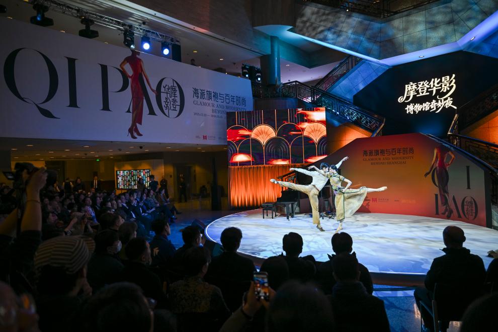12月22日,演员在“摩登华影:海派旗袍与百年时尚”博物馆奇妙夜活动上表演。