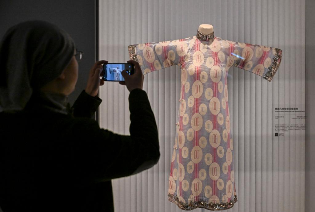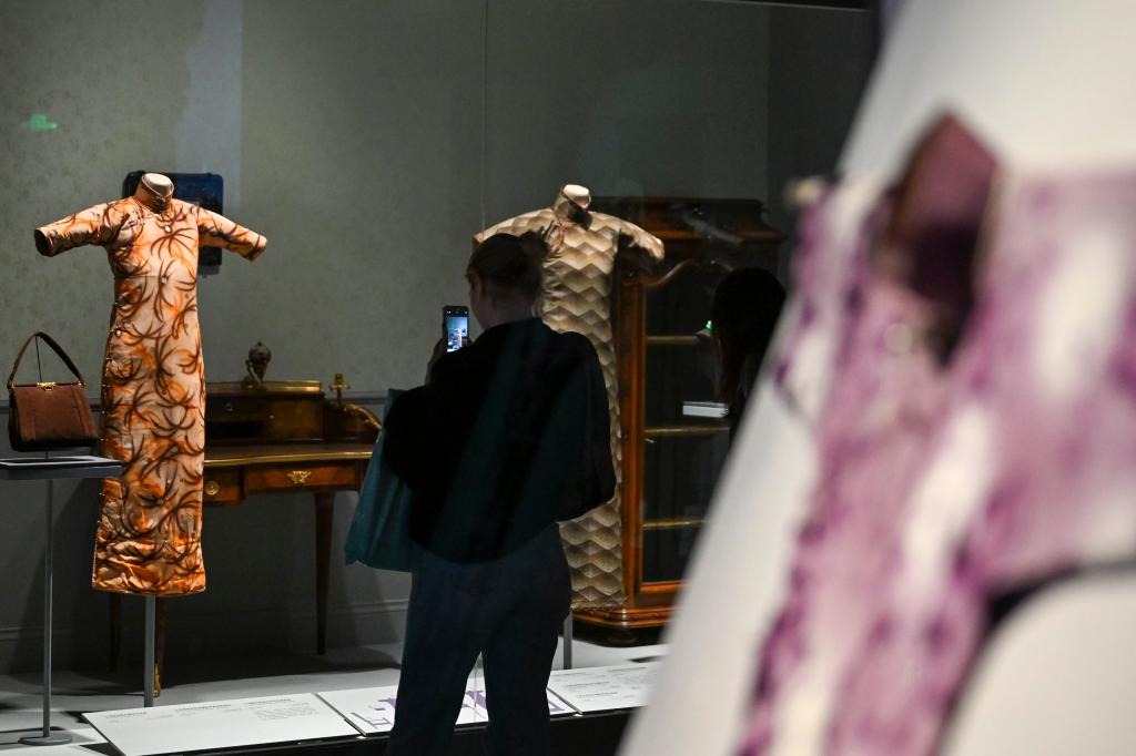 12月22日,观众在“摩登华影:海派旗袍与百年时尚”预展上拍摄展品。