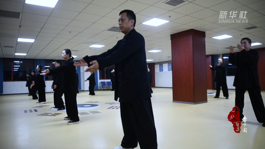 清晨,河北省广平县国术馆内,太极爱好者们身着素雅练功服,一遍遍习练太极拳和器械,动作刚柔并济,队形整齐划一。