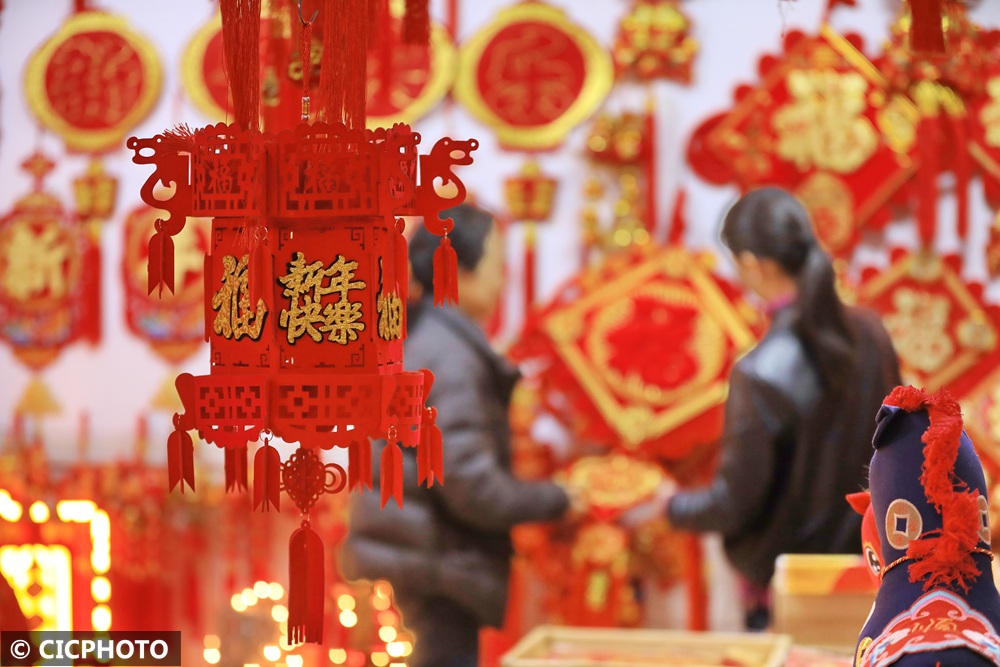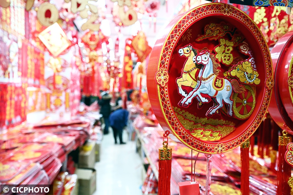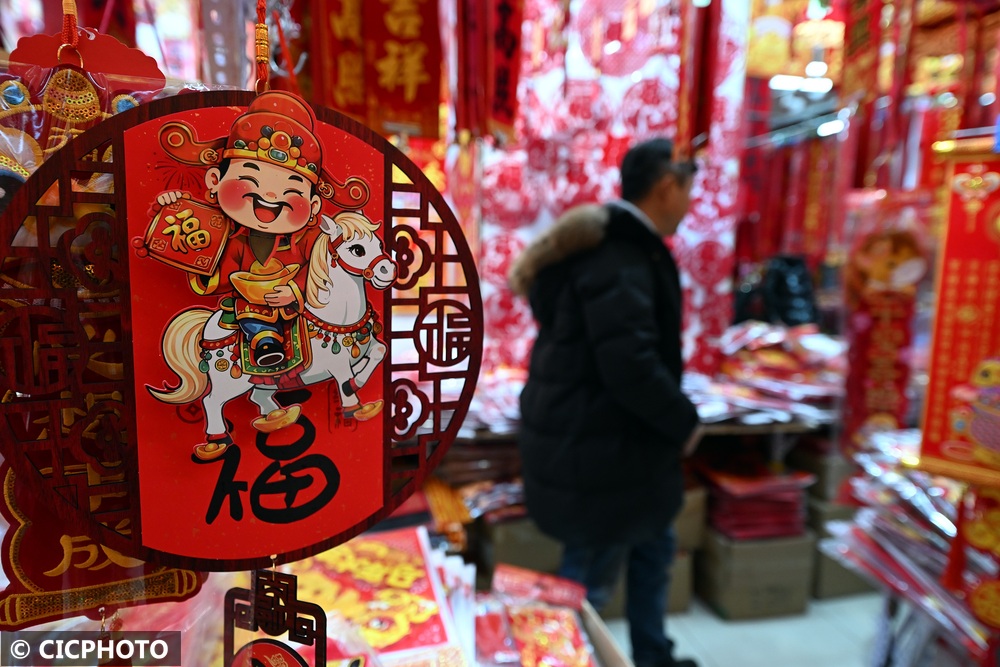 ↑2025年12月22日,市民在辽宁省沈阳市一家小商品城选购新年饰品。CICPHOTO/赵敬东 摄