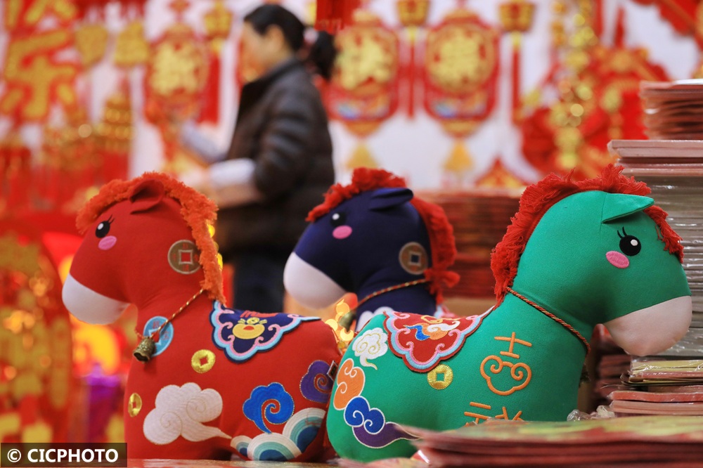 ↑2025年12月23日在浙江省嘉兴市南湖区一家小商品批发市场拍摄的马年生肖饰品。CICPHOTO/金鹏 摄