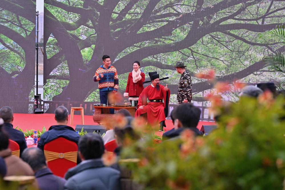 2026年1月1日,福州植物园干部职工在2026新年文艺汇演上表演情景剧《四库茶会》。