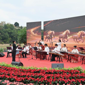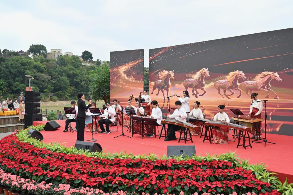 2026年1月1日,福建农林大学师生在2026新年文艺汇演上表演民乐合奏《赛马》。