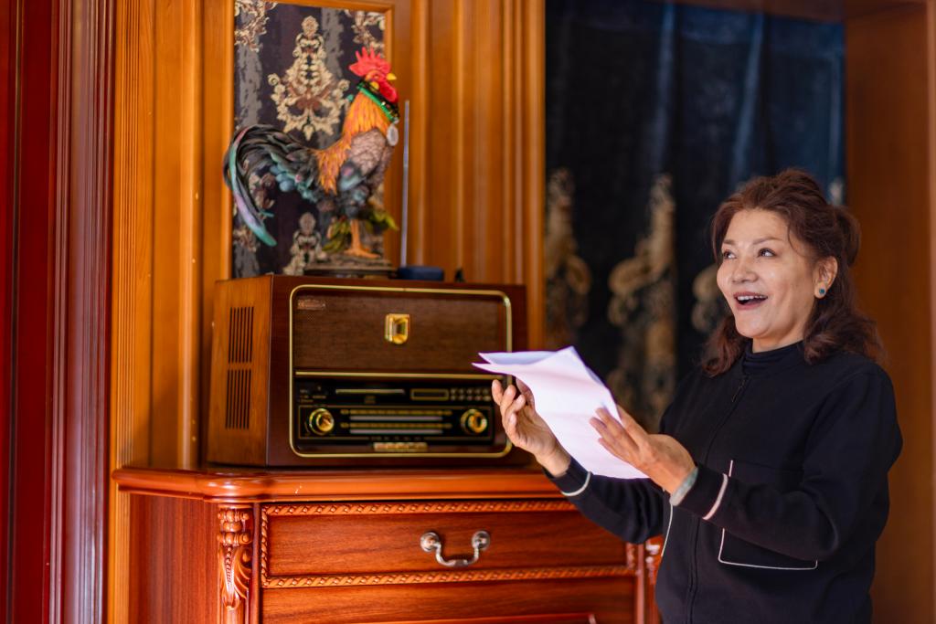 藏族女高音歌唱家巴桑在家中练声(2025年11月6日摄)。