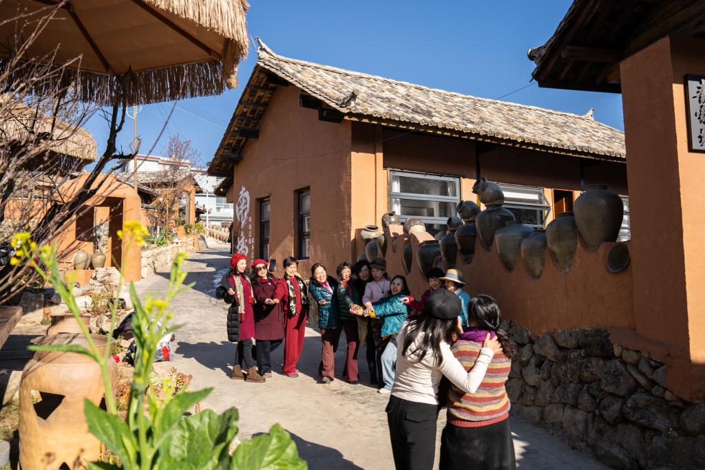 1月22日,游客在云南省临沧市碗窑村游览拍照。
