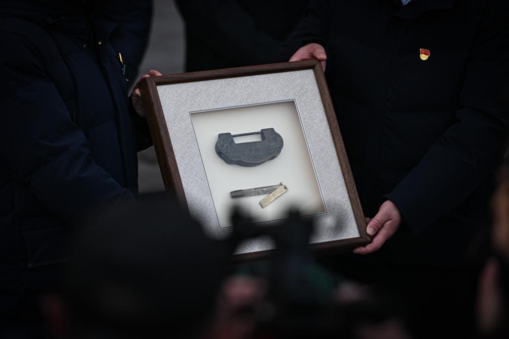 这是1月22日拍摄的琉璃阁院落腾退移交仪式的“交钥匙”环节。