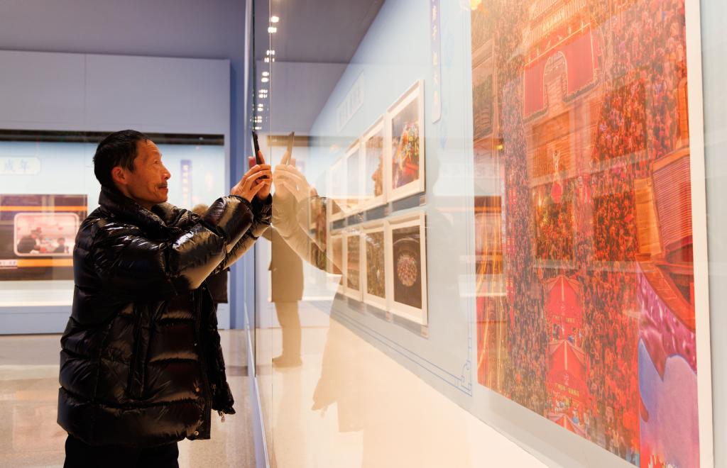 1月26日,在中国非物质文化遗产馆举行的展览现场,观众用手机拍摄展览作品。