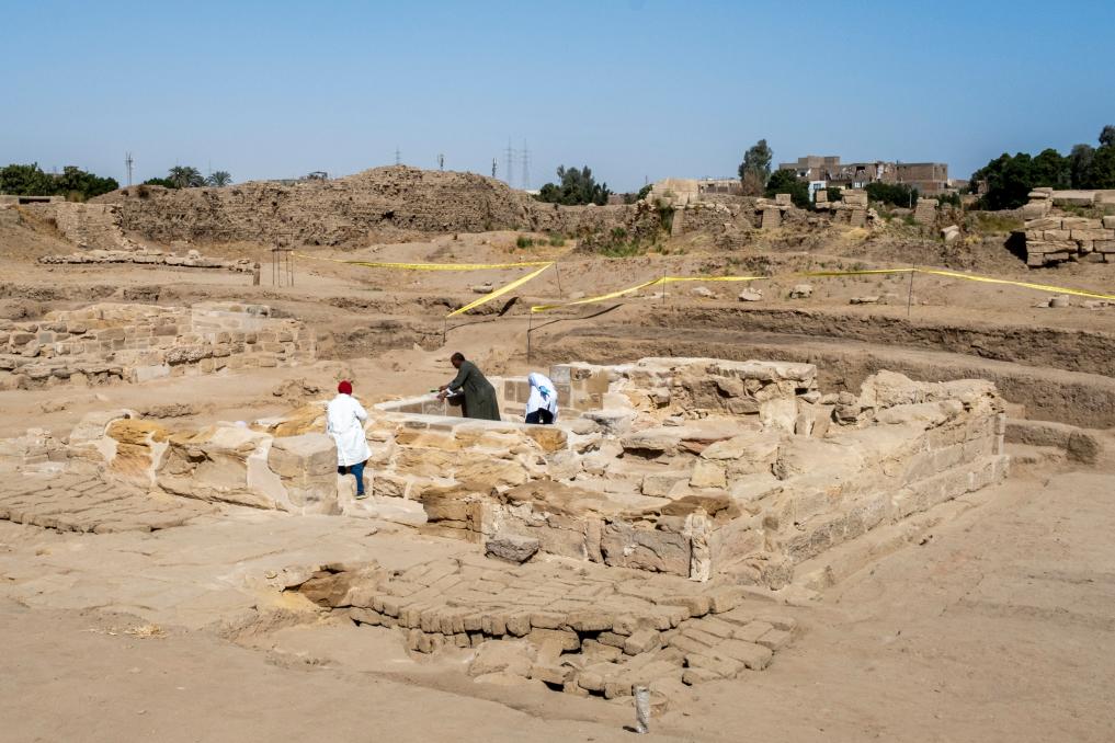 中埃卢克索孟图神庙联合考古队24日宣布,在埃及卢克索省卡尔纳克孟图神庙遗址区成功清理出一座此前未知的圣湖建筑遗迹。