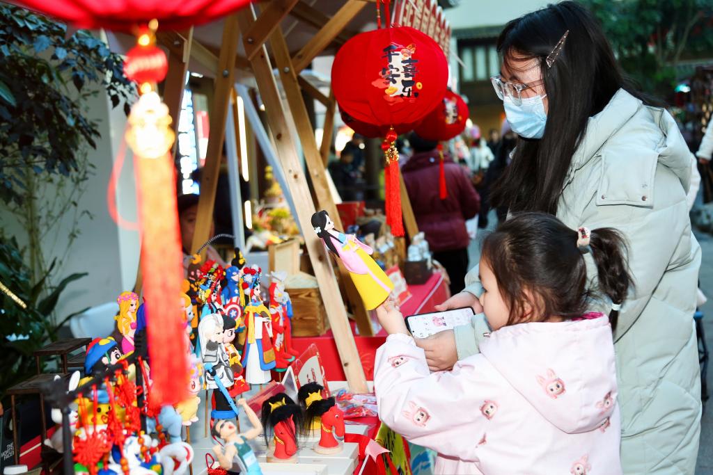 小学教师李月琦专门从吴忠市赶来看表演、逛非遗国潮年货集。她说,传统武术和戏曲的融合给人很强的视觉冲击力,剪纸、掐丝画等非遗让年味儿更浓。