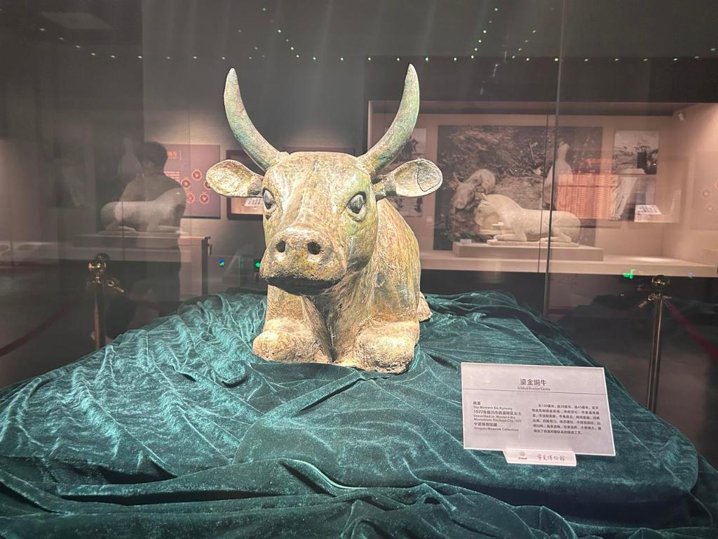 据了解,在MⅢ-107陪葬墓中,与石马一起出土的还有一个“国宝级文物”——鎏金铜牛。这件“国宝”重达188公斤,长120厘米,宽38厘米,高45厘米,采用传统外范内模浇铸技术制作而成。其造型生动逼真,颈部肌肉以及皮下脊椎骨线条清晰可见,表面鎏金,历经千年依旧全身散发金光,展现了西夏高超的金属冶炼和铸造技术。