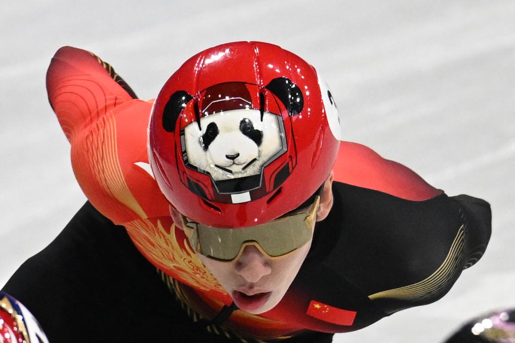 2026年2月10日,中国选手林孝埈在短道速滑男子1000米预赛中。