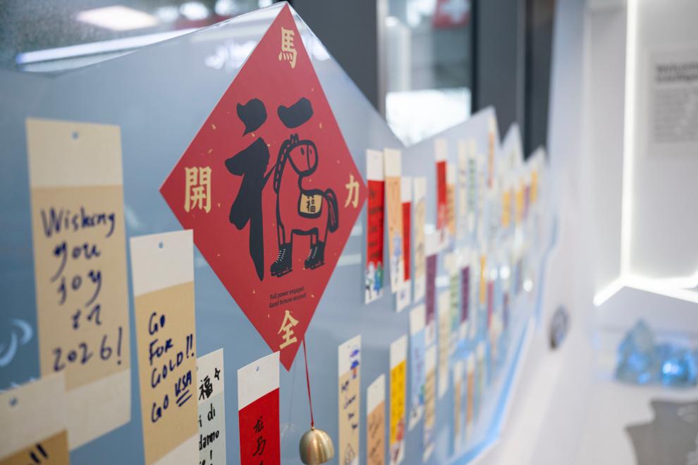 2026年2月4日,媒体记者在冬奥会“中国之家”拍摄农历马年文化展示区。