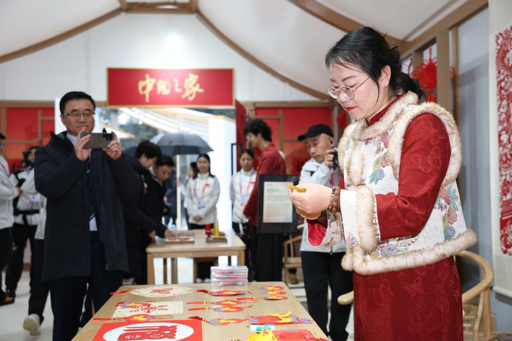 2026年2月4日,非遗传承人在冬奥会“中国之家”展示剪纸。米兰冬奥会开幕式上