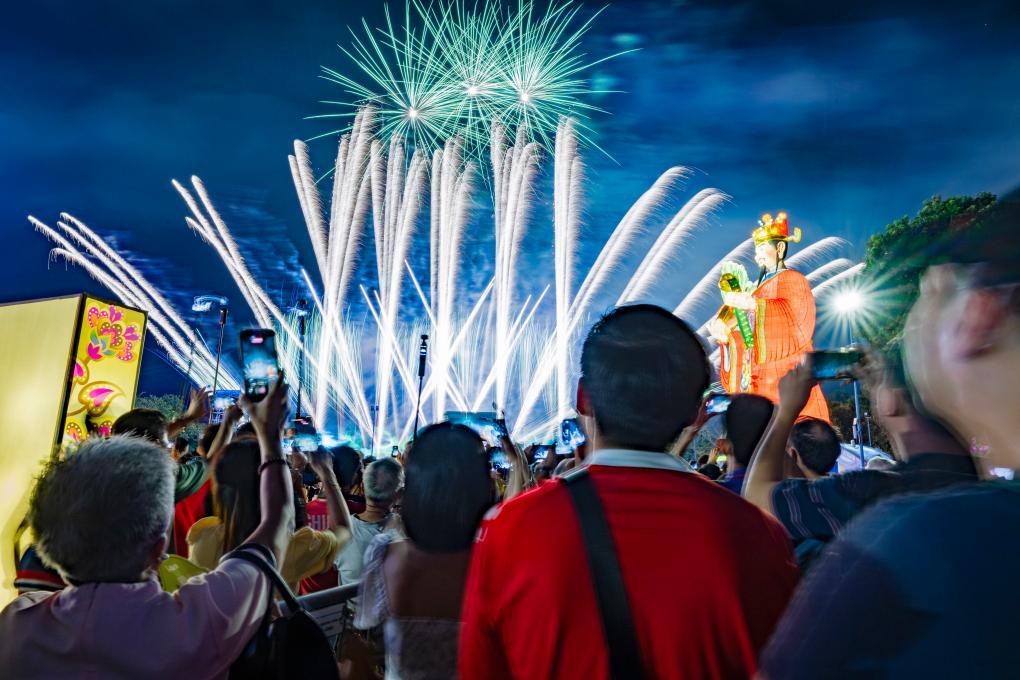 2026年2月15日,民众在新加坡滨海湾花园举行的“春到河畔”春节庆祝活动上观赏烟花表演。文明互鉴,美美与共