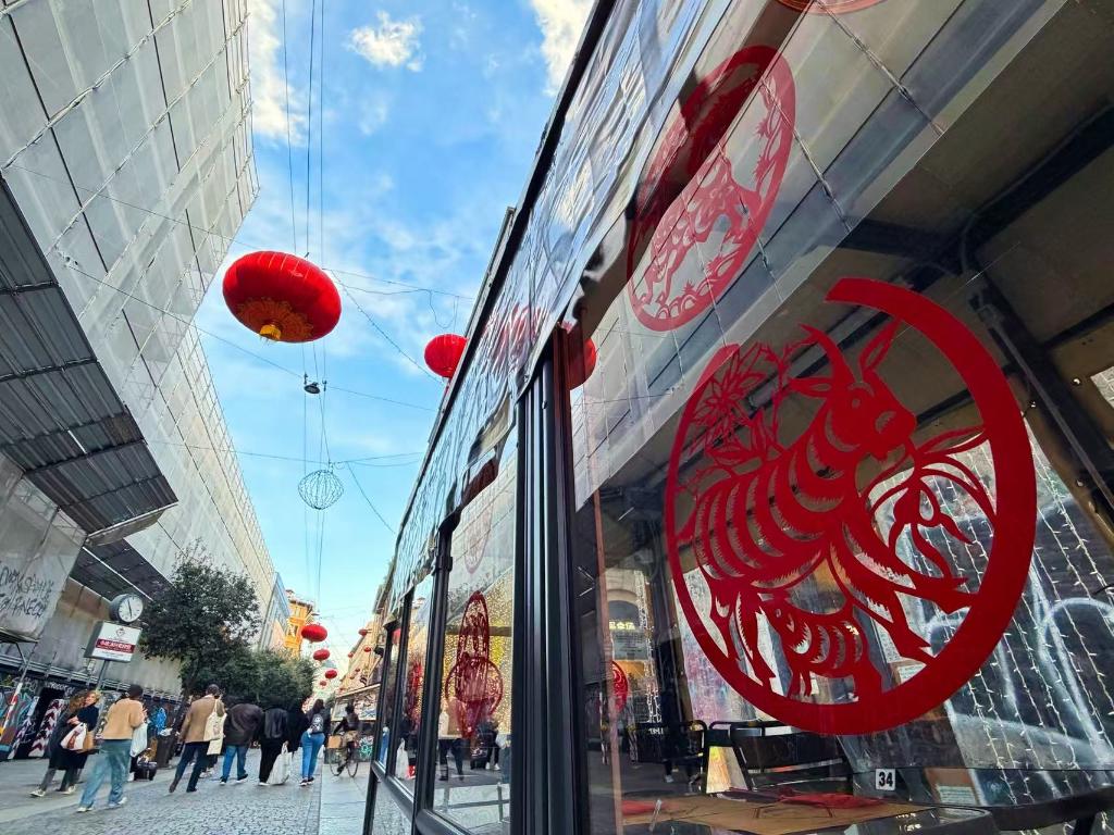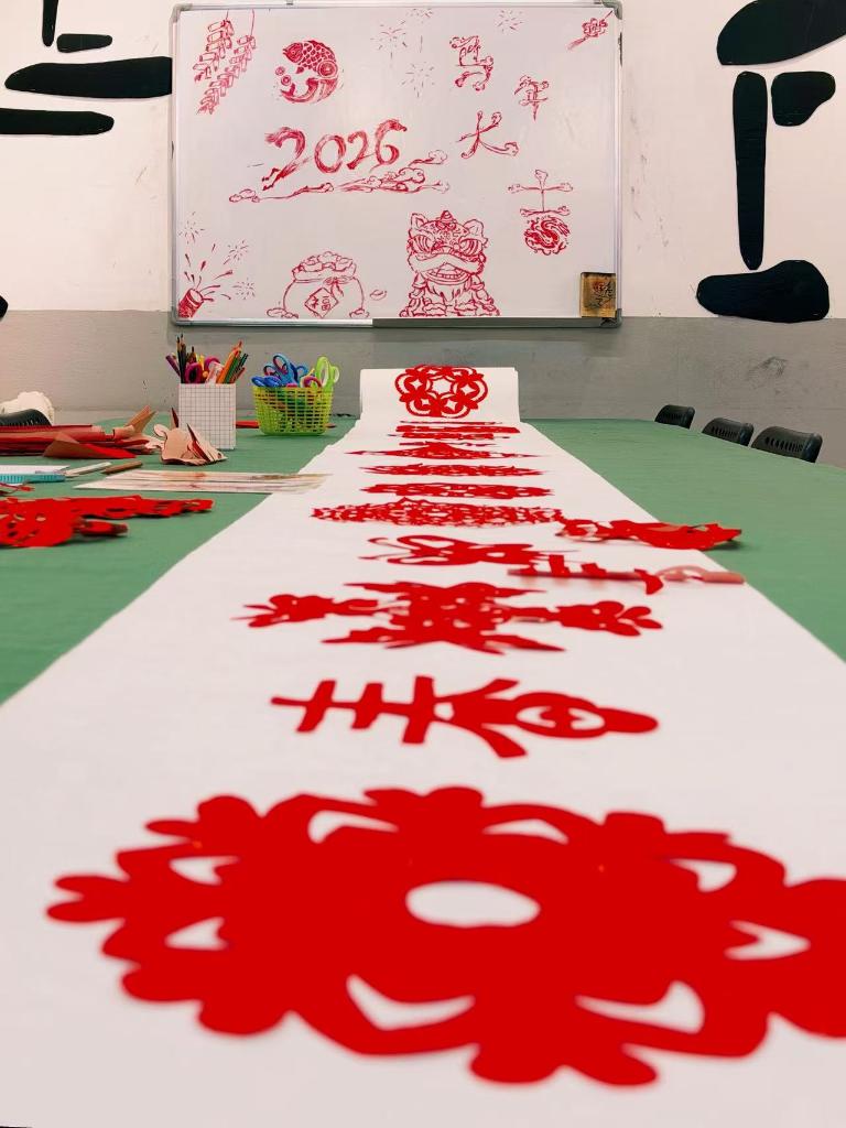 这是2026年2月16日拍摄的米兰中华文化体验中心里的剪纸。从米兰冬奥村里醒目的“中国加油”