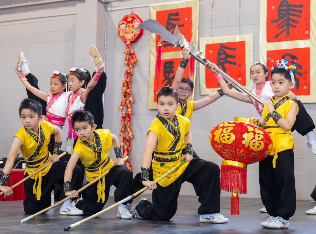 2026年2月15日,在加拿大多伦多举办的春节庙会上,儿童进行武术表演。