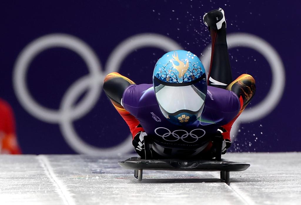 2026年2月13日,赵丹在钢架雪车项目女子单人赛中出发。