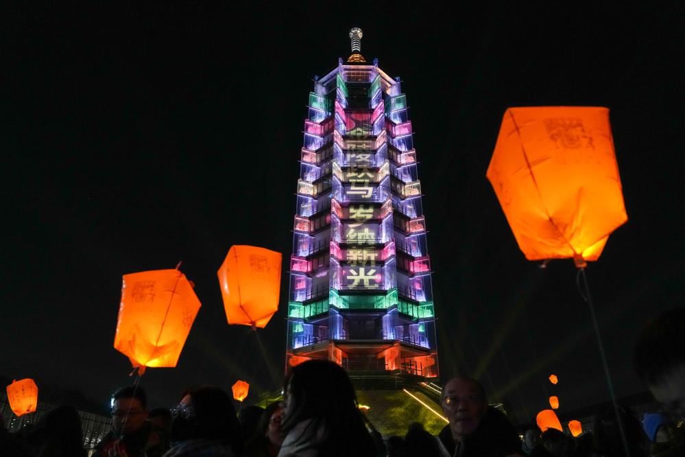 2月17日,南京大报恩塔点亮多彩灯光庆祝春节。