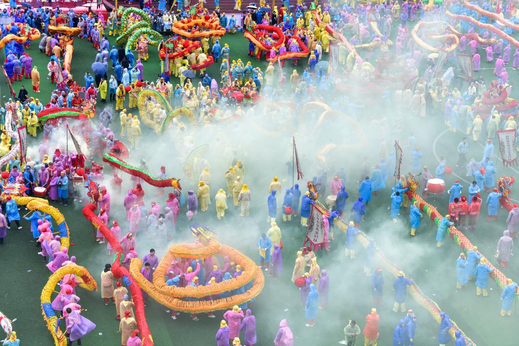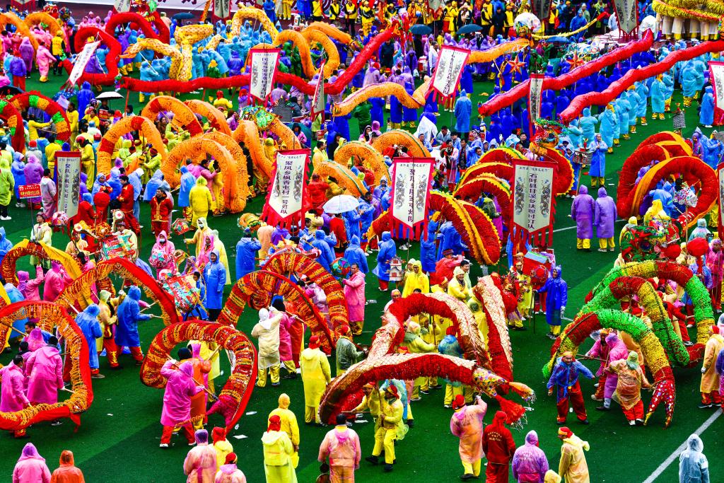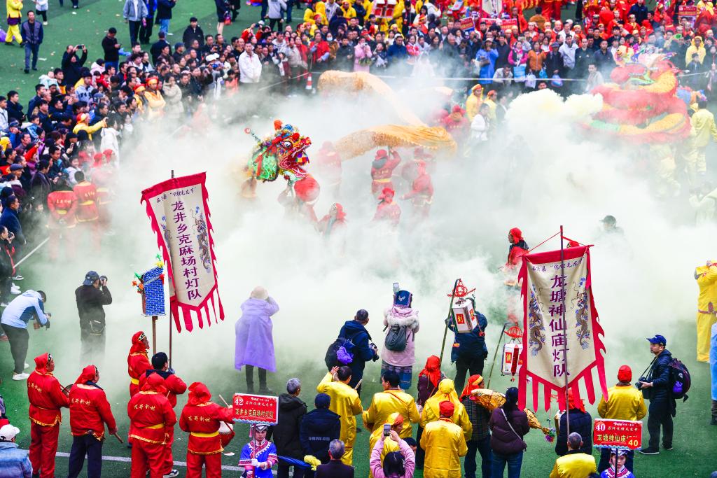 2月27日,贵州省铜仁市石阡县举办主题为“龙腾马跃·福满阡城”的仡佬毛龙节贺新春活动。来自全县的80支毛龙队和9支非遗展演队齐聚石阡县城,举行毛龙巡游、毛龙祈福、舞龙大赛、非遗展演等活动,欢庆毛龙节,喜迎新春。