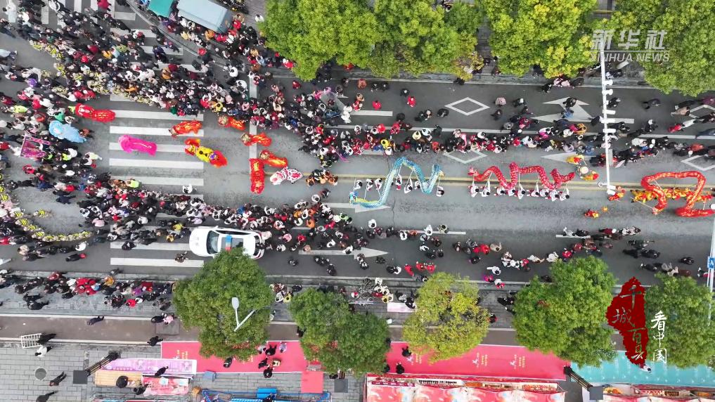展演结束后,由智能机器人与龙灯、狮子灯、土家花灯、高花灯、蚌壳灯等组成的民俗方阵依次亮相,开展巡游表演。巡游队伍一路锣鼓铿锵、舞姿灵动,向沿途市民游客送上新春祝福,祈愿新的一年风调雨顺、五谷丰登。