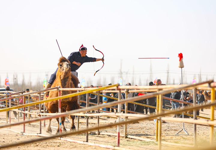 联赛自2025年12月启幕,历经四场月赛,来自内蒙古、甘肃、新疆等六省区的26支代表队、1050峰骆驼同场竞技。项目涵盖15000米越野赛、4×2000米接力赛、5000米成年骆驼场地赛,以及3000米二岁幼驼场地赛、乘驼射箭等。