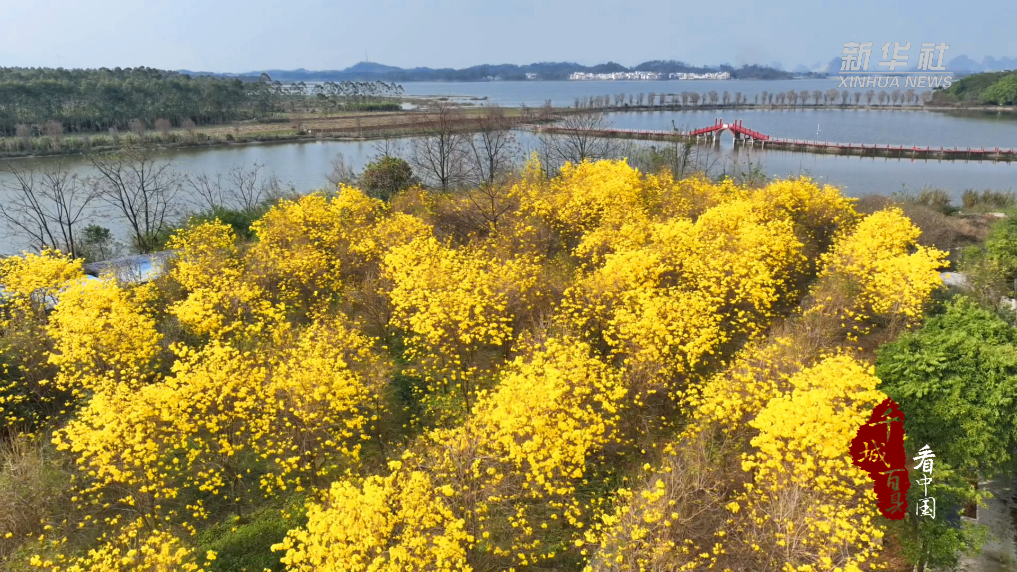春风和煦,草长莺飞。广西壮族自治区贵港市覃塘区九凌湖旅游风景区内春意渐浓,景色宜人。灿若云霞的黄花风铃木迎来最佳观赏期。碧波荡漾的湖面与绚烂花海交相辉映,绘就一幅生机盎然的春日画卷。