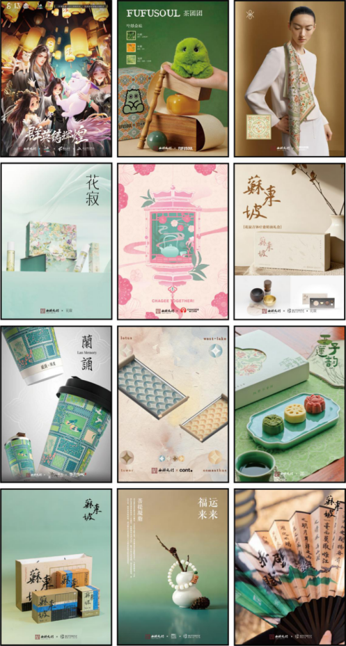 自西湖区纹样基因库启动建设以来,目前已完成春茗雅韵、西溪诗境、湖山文韵三大主题共计60组纹样设计,区别于传统的静态图案,西湖纹样因融入数字建模、结构化图谱构建等技术,成为可调整、可重组的“纹样数据”,拥有鲜活的文化生命力。目前,西湖文创公司已推出纹样杜邦袋、透卡、文件夹、茶点礼盒、杯垫等多款实用文创产品,将西湖与西溪的自然人文底蕴转化为贴合现代生活的设计语言。同时,西湖文创公司已开启多领域跨界合作,与腾讯游戏《轩辕传奇》联手将西湖纹样转化为游戏特效皮肤,让传统文化沉浸式触达年轻群体;与万事利合作推出“茶韵荷风”丝巾,让纹样的审美积淀融入服饰设计;与百越文化的合作,让传统文脉与纹样艺术完美相融;与花寂的跨界,则让诗意疗愈与纹样艺术共同传递。如今,西湖纹样基因库已进一步形成从IP孵化到商业转化的完整路径,合作赛道覆盖游戏、服饰、护肤品、茶具、茶饮、茶食、数字藏品等多个领域,并且积极进行文化出圈出海活动。