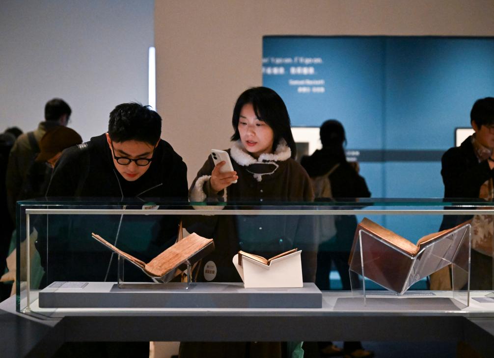 3月17日,媒体人员在展览现场欣赏展品。