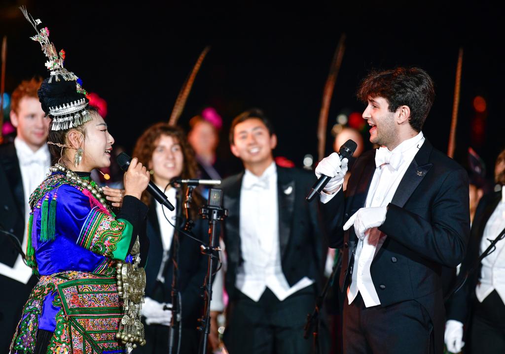 3月23日至24日,美国耶鲁大学威芬普夫斯阿卡贝拉合唱团走进贵州省黔东南苗族侗族自治州黎平县,开展“大鸾和鸣·天地交响”主题文化交流活动。在侗寨旁、鼓楼中、天生桥下,两国青年以音乐为桥梁纽带,让侗族大歌与阿卡贝拉相互交融。