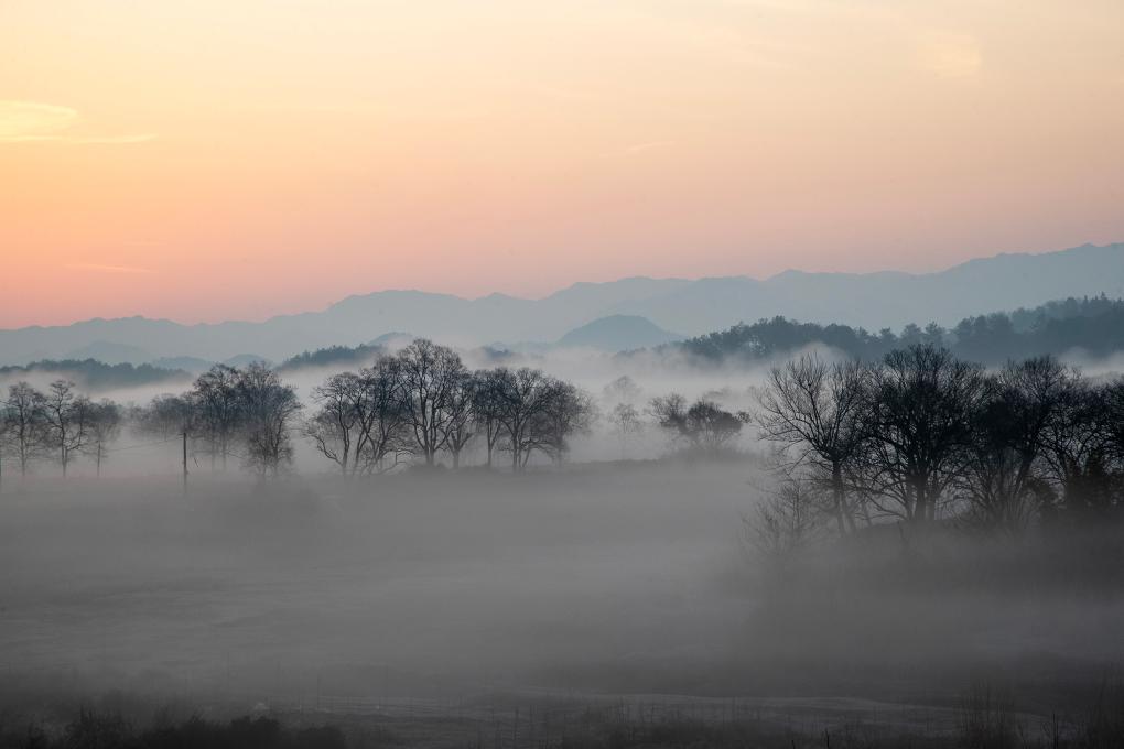 近日,多地出现云雾景观,山峦、建筑、树木、田园若隐若现,宛如一幅幅意境悠远的春日山水画卷。