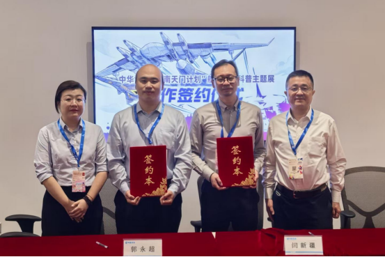 4月9日,中国航空工业文化中心与北京歌华文化中心有限公司在第三十八届国际玩具及潮玩(深圳)展览会上就“南天门计划”航空科幻科普主题展及系列活动举行了签约仪式。