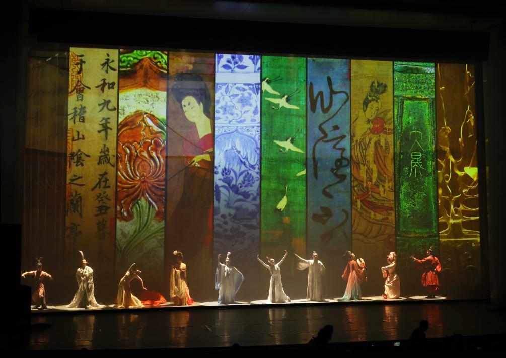 在辽宁大剧院拍摄的《古色·国宝辽宁》演出现场(4月19日摄)。