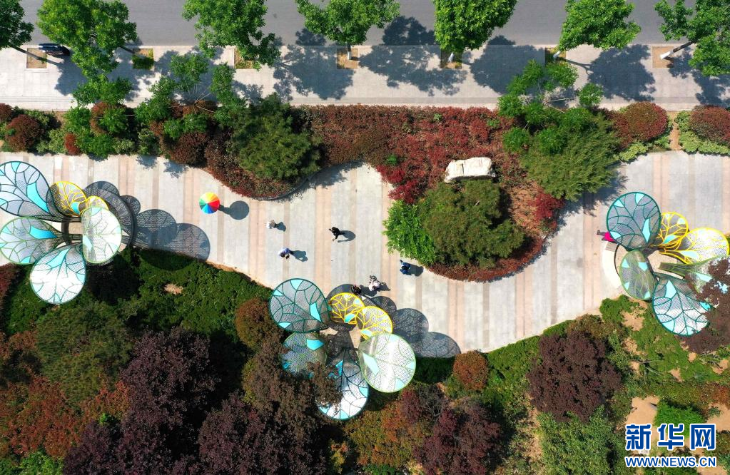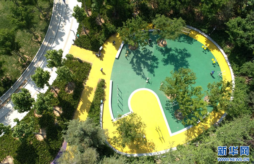 5月15日,市民在山东省青岛市即墨区一处“口袋公园”游玩(无人机照片)。