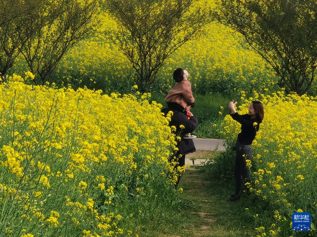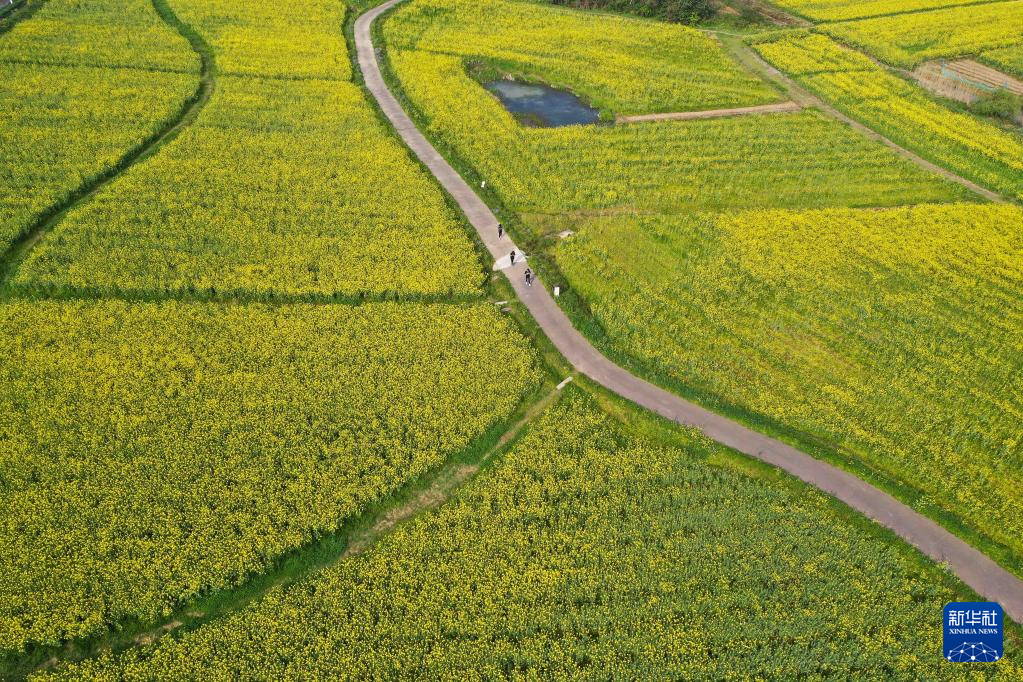 近日,江苏省南京市高淳区桠溪国际慢城的万亩油菜花进入盛花期。金色的花海与民居、茶园相映成趣,构成美丽的春日画卷。